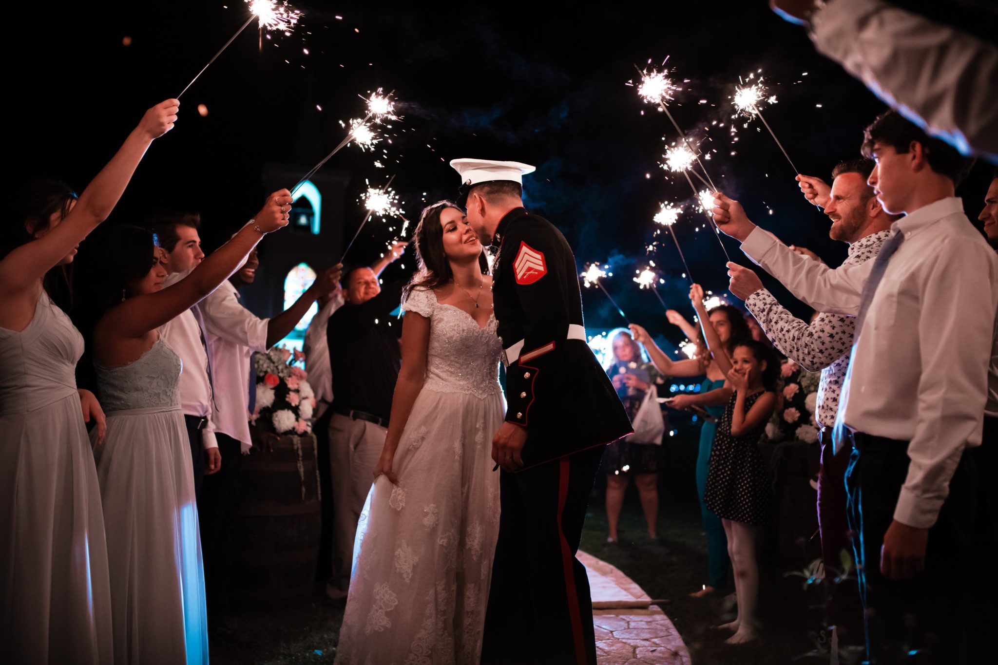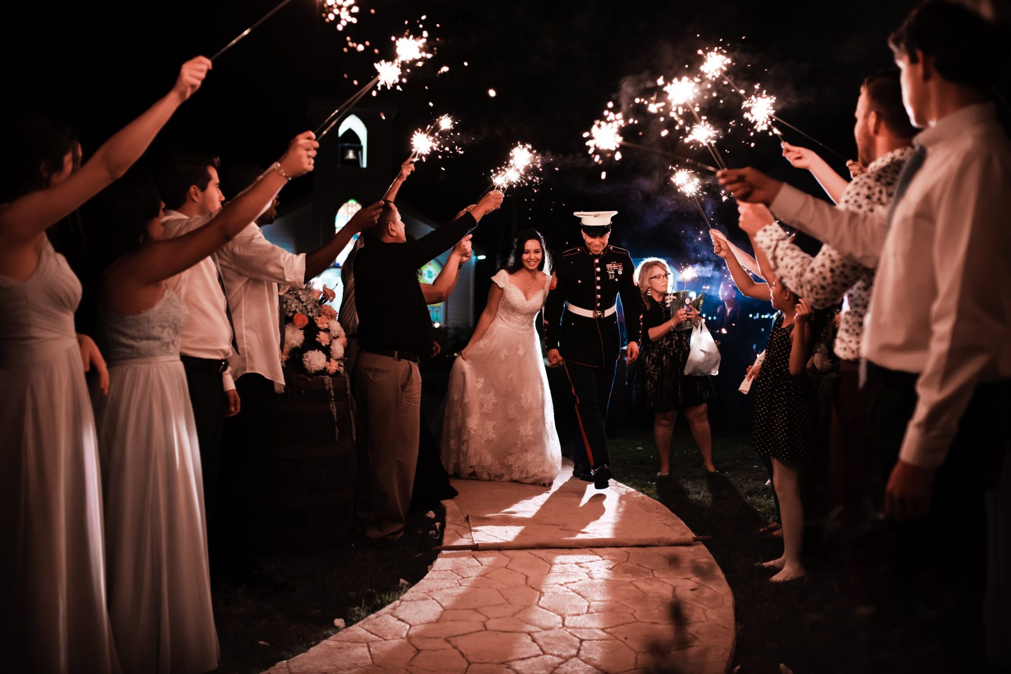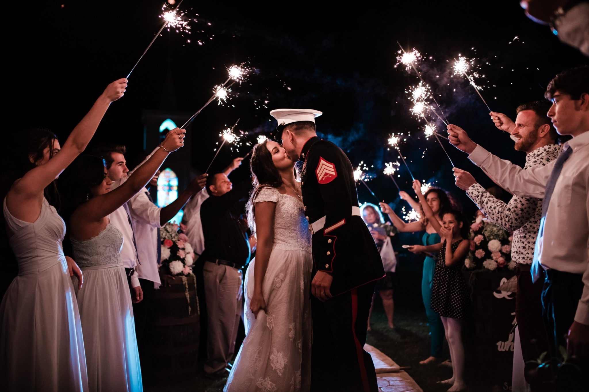 Talk about going all out on your wedding day. This bride was one lucky princess! A white chapel with red door and a barn wheel was built specially for her wedding day by her dad. Family flew in from other countries to celebrate; her creative mother personally hand painted most of the pinteresty wooden love signs in the photos, her wedding dress was so beautiful, a tree was lit with tea lights in mason jars for an extra touch of romance, she had a bride squad to die for, complete with rose gold matching robes for all. The couple when together seemed to make time stop, the telltale sign of the young, passionate love for each other. Though it was a long day, the end to the fairy tale wedding day was worth it. The celebration ended with a spectacular SPARKLER EXIT and the groom whisking his new wife away from the crowd. Congratulations you guys, cheers to many many loving years together!