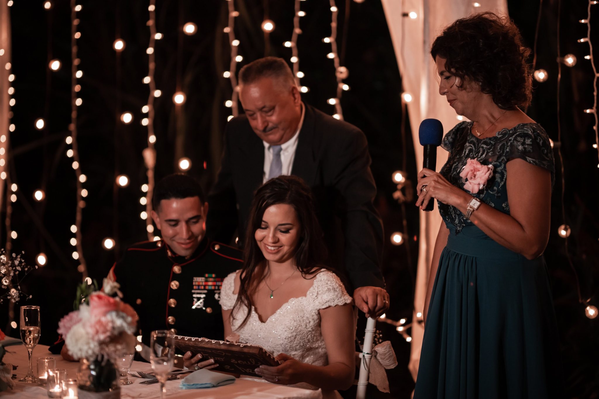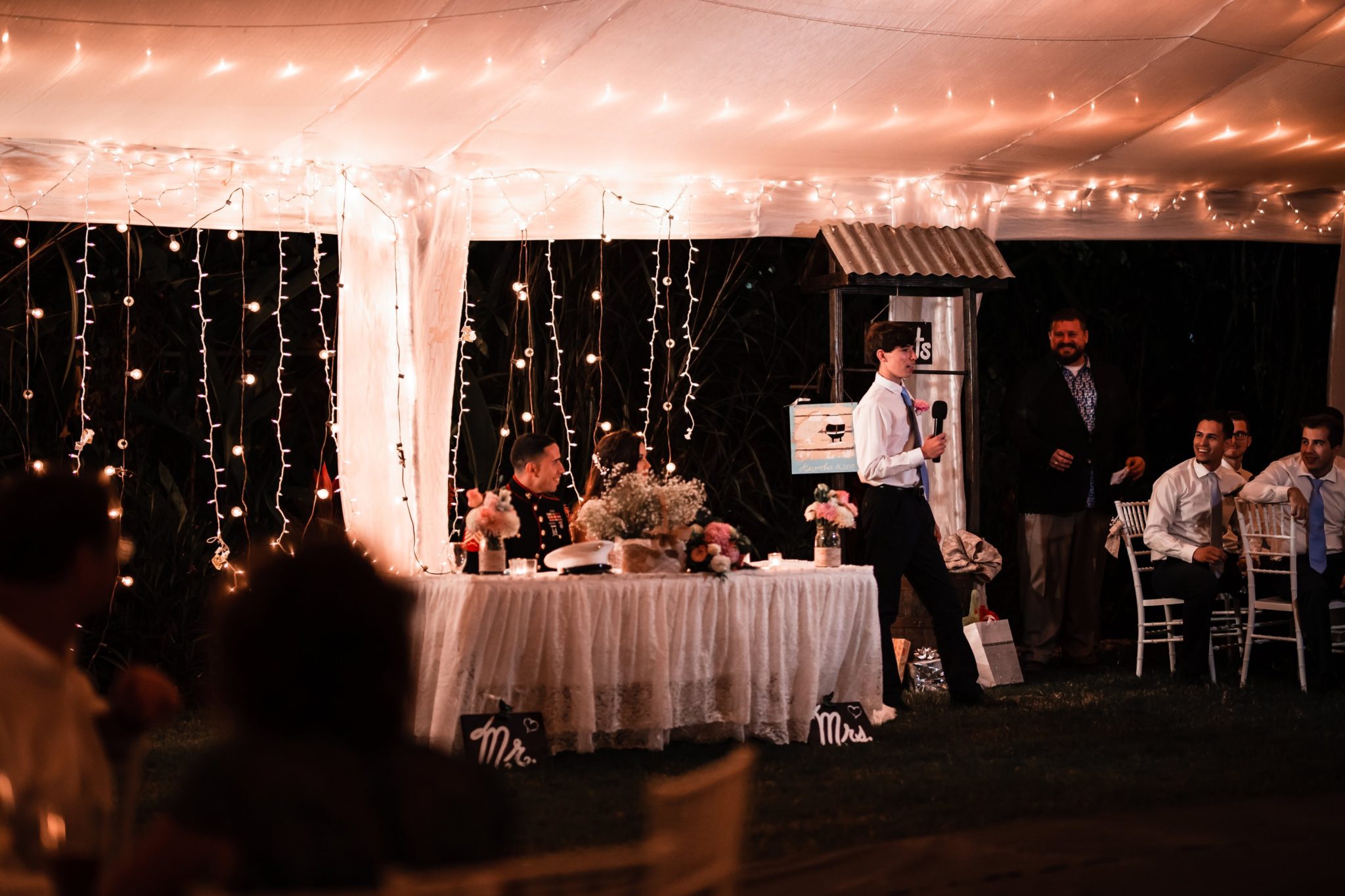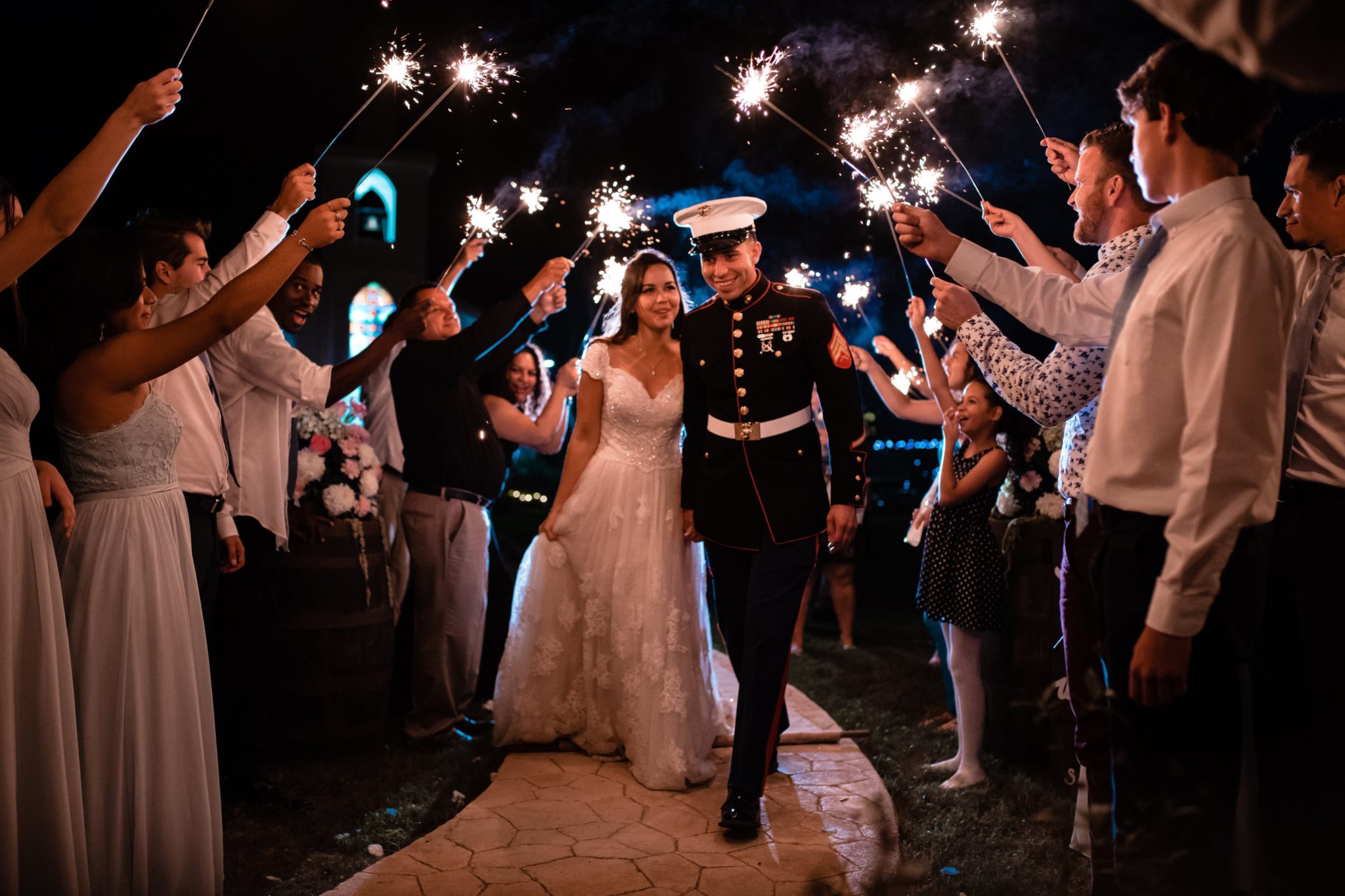 Talk about going all out on your wedding day. This bride was one lucky princess! A white chapel with red door and a barn wheel was built specially for her wedding day by her dad. Family flew in from other countries to celebrate; her creative mother personally hand painted most of the pinteresty wooden love signs in the photos, her wedding dress was so beautiful, a tree was lit with tea lights in mason jars for an extra touch of romance, she had a bride squad to die for, complete with rose gold matching robes for all. The couple when together seemed to make time stop, the telltale sign of the young, passionate love for each other. Though it was a long day, the end to the fairy tale wedding day was worth it. The celebration ended with a spectacular SPARKLER EXIT and the groom whisking his new wife away from the crowd. Congratulations you guys, cheers to many many loving years together!
