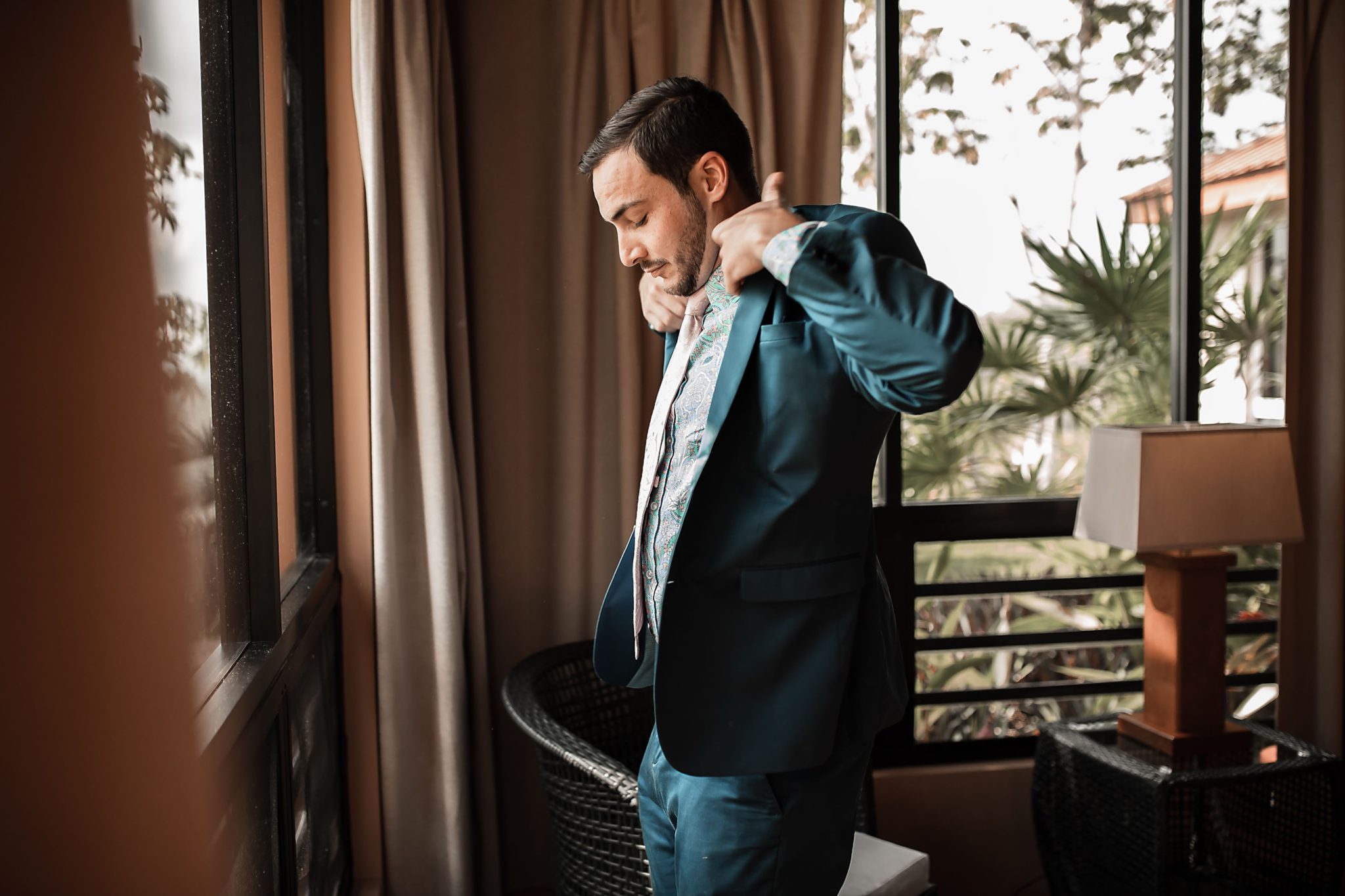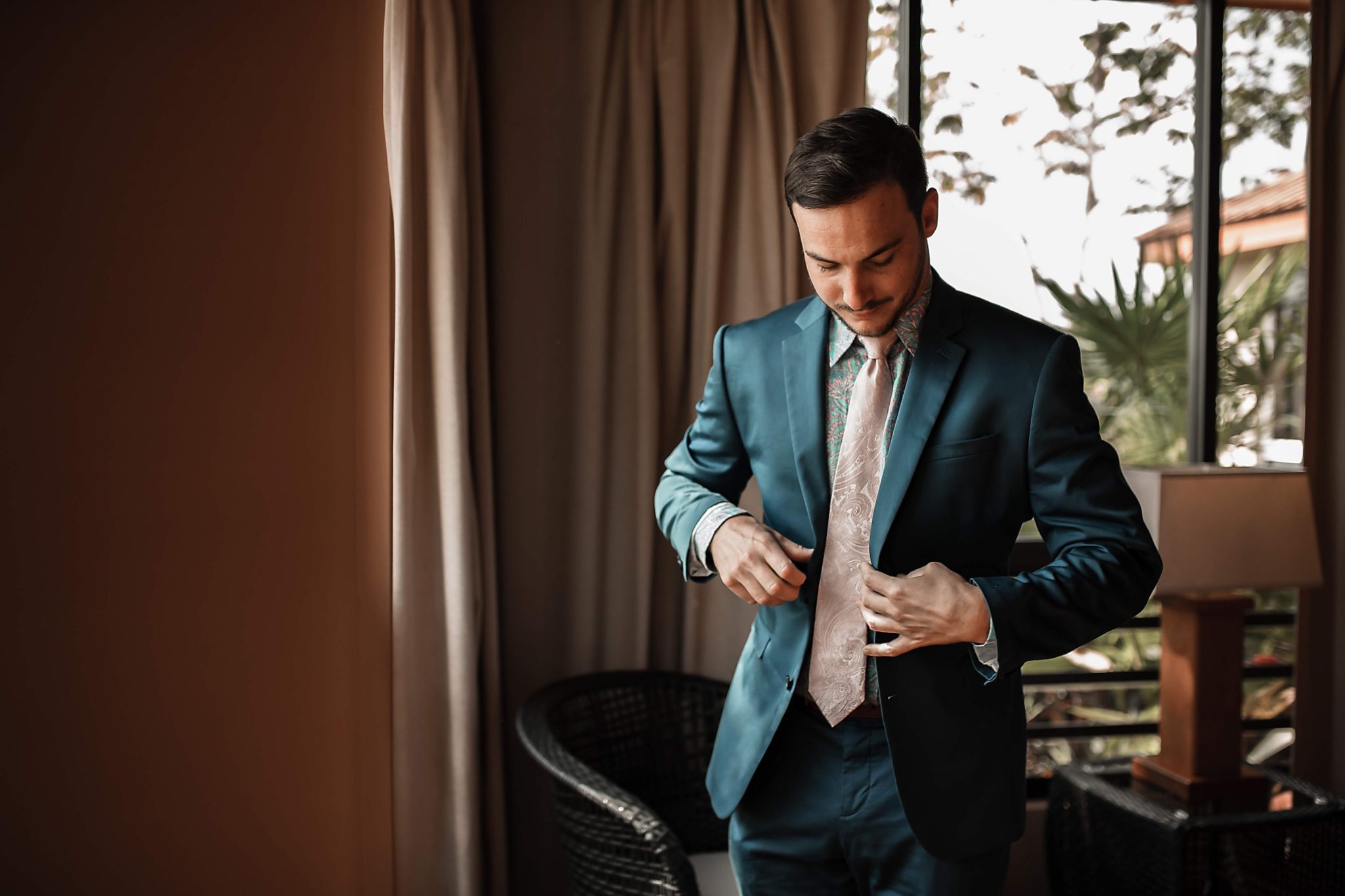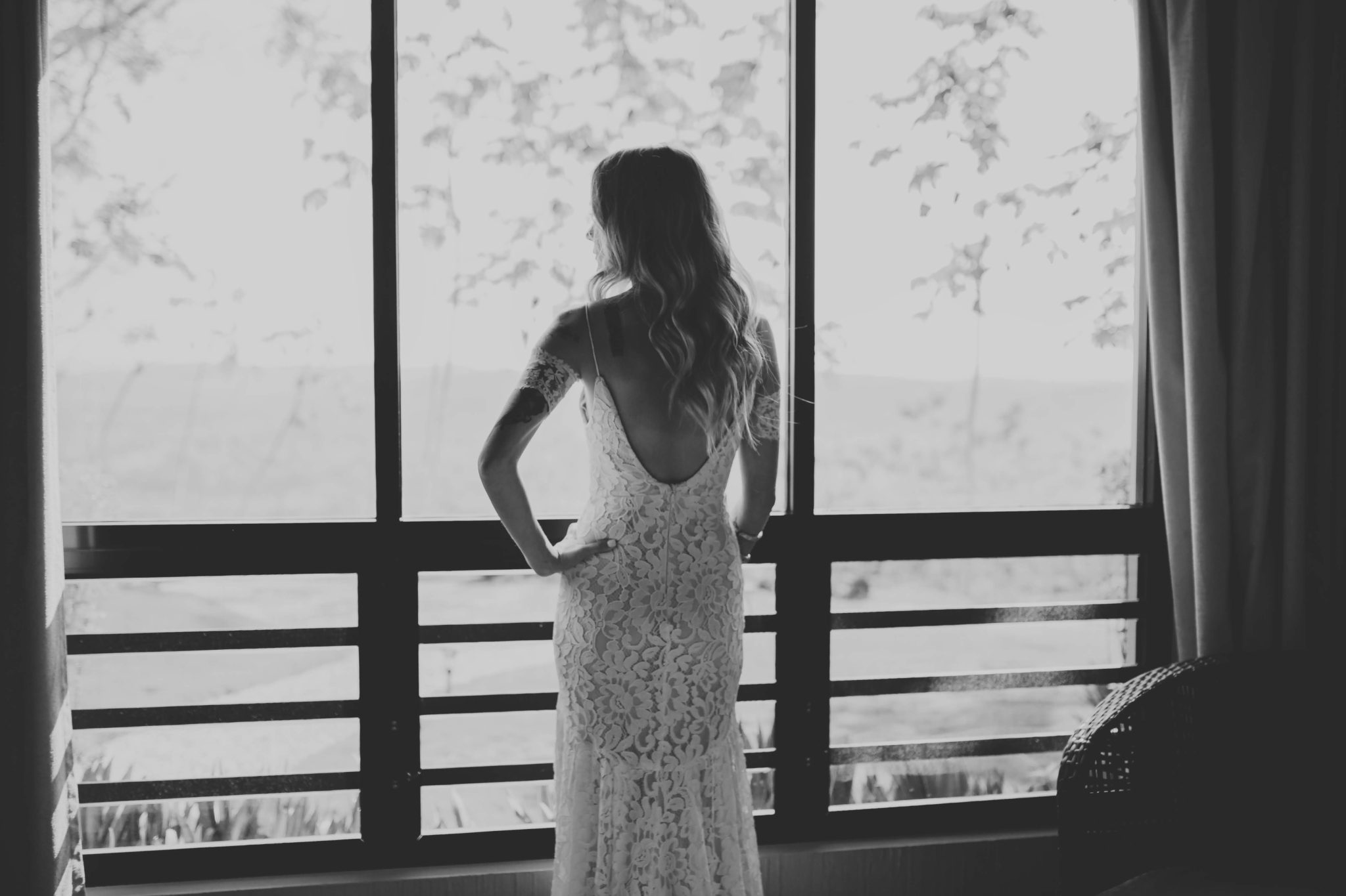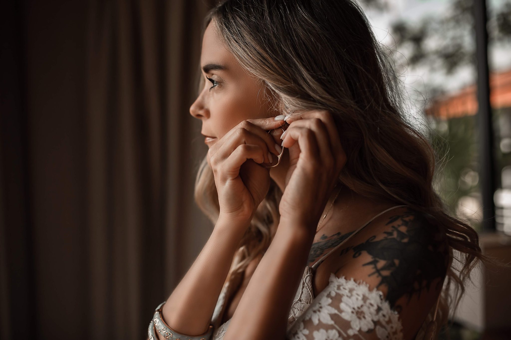 I knock on Joey and Maddy’s door and I’m greeted with a bright, welcoming smile on Joey’s face. ”Hi Lupita, come on in, we are almost ready”. I entered the room and was stunned by the sight of a beautiful bohemian chic beauty; Maddy in her beautiful lace wedding dress, perfectly styled hair, a jaw dropping bouquet with tropical flowers and delicate touches of boho jewelry and other meaningful accessories. Like the lace sleeves on her dress, that were made out of cut outs from her mom’s wedding dress. We introduce ourselves and immediately begin shooting. The light was perfect as it was natural, so i put my flash away and Shirley, my assistant, used their gopro to film the whole thing instead. I am certain the center of attention of that video was my matrix/ballerina/yoga moves while working on getting angles from down low and way high…Sorry guys….
